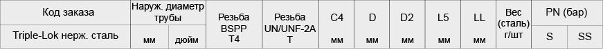 Детали Triple-Lok® из стали, нерж. стали и латуни поставляются с уплотнителем из NBR в стандартной комплектации. Более подробная информация о других материалах уплотнителя на стр. K92. Приведенные коды заказа включены в нашу текущую программу производства. Дюймовые и метрические детали могут различаться по размеру шестигранника.