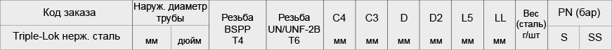 Детали Triple-Lok® из стали, нерж. стали и латуни поставляются с уплотнителем из NBR в стандартной комплектации. Более подробная информация о других материалах уплотнителя на стр. K92. Приведенные коды заказа включены в нашу текущую программу производства. Дюймовые и метрические детали могут различаться по размеру шестигранника.