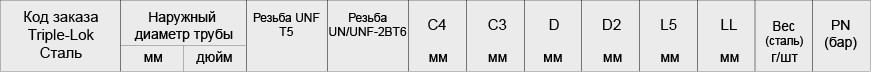 Детали Triple-Lok® из стали, нерж. стали и латуни поставляются с уплотнителем из NBR в стандартной комплектации. Более подробная информация о других материалах уплотнителя на стр. K92. Приведенные коды заказа включены в нашу текущую программу производства. Дюймовые и метрические детали могут различаться по размеру шестигранника.