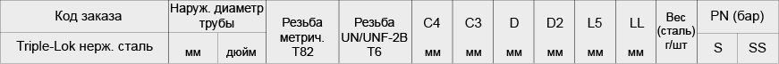 Детали Triple-Lok® из стали, нерж. стали и латуни поставляются с уплотнителем из NBR в стандартной комплектации. Более подробная информация о других материалах уплотнителя на стр. K92. Приведенные коды заказа включены в нашу текущую программу производства. Дюймовые и метрические детали могут различаться по размеру шестигранника.