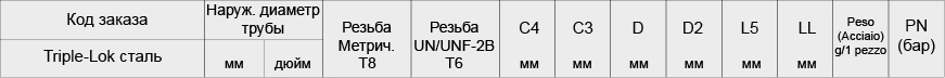 Детали Triple-Lok® из стали, нерж. стали и латуни поставляются с уплотнителем из NBR в стандартной комплектации. Более подробная информация о других материалах уплотнителя на стр. K92. Приведенные коды заказа включены в нашу текущую программу производства. Дюймовые и метрические детали могут различаться по размеру шестигранника.