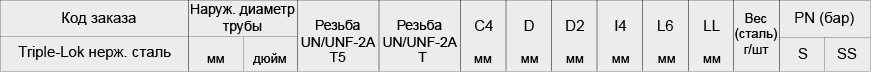 Детали Triple-Lok® из стали, нерж. стали и латуни поставляются с уплотнителем из NBR в стандартной комплектации. Более подробная информация о других материалах уплотнителя на стр. K92. Приведенные коды заказа включены в нашу текущую программу производства. Дюймовые и метрические детали могут различаться по размеру шестигранника.